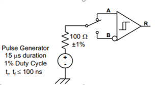 The voltage input, transient pulse, A and B, through 100 Ohms is specified with the following setup: