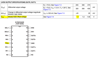 The device was created and spec'd around the recommended operating conditions which means the minimum voltage on Vcc should be 3V inorder for the device to meet the Vos parameter min spec. Since this is a min spec, it means Vos may be larger than 1V at Vcc=3V but should not exceed 1.45V (Vos max)