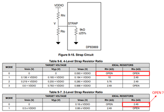 Is mode0 for the 2-Level Strap Resistor Ratio of the DP83869HM an OPEN? or is it a 2.49 kΩ pull-down?