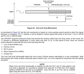 The time based on the link loss mechanism of the DP83867E shown in the T1 window in Figure 20 is described as less than 1msec in 100Mbps mode and less than 0.5msec in 1000Mbps mode, but is this correct to consider?