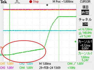 VBUS ramp up slowly till 1V in 5ms and then ramp up to 5V in 1ms to 2ms.