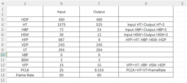 The minimum clock frequency of ds90ub928 output pattern is 25M, but the clock range of our screen is 7.32~10.433M. Now we want to complete the time sequence conversion through the distortion correction chip S2D13V40, but the output image is not on the screen, please help to check whether the configuration of ds90ub928 is correct.