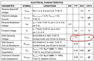 I recommend using an ESD diode with a lower clamping voltage (closer to 3V is ideal). A device we typically recommend is the PUSB3FR4.
