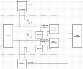I got an idea from our my colleague who used SIGCON tool before for another project, and I have created one diagram (see below). But if this is correct, I want to know how can we probe the wires at TI retimer SDA/SCL/GND pins in Mclaren board. Because those pins are already connected to other two devices as shown in the above snapshot. It would be helpful if you can update the above block diagram with the changes required for connecting TI retimer to USB2ANY device.