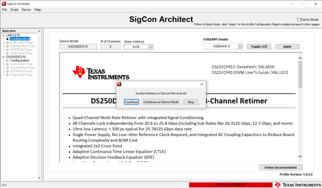 Other Parts Discussed in Thread: USB2ANY, , DS250DF210,