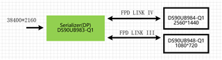Hello! There is currently an application, as shown in the screenshot below. The SOC produces an image with a maximum resolution of 38400 * 2160, which needs to be divided into two images for display. One image is transmitted to 984 through FPD LINK IV and the other is transmitted to 948 through FPD LINK III. Please help confirm if this application is feasible, especially if there are two protocols, FPD LINK IV and FPD LINK III, on the same chip. Thank you.