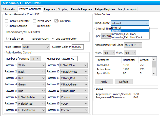 case1:947设置Single link & Dual-pixel mode,打lvds信号给948,948出现异常,无法识别和读写;
