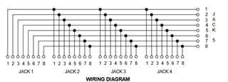 The Jack 5 will come from the PC and Jack 1 to 4 will be connected to each MCUs through the backplane.
