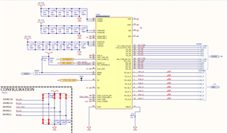 Firstly, on the PHY address pins, RX_D0 and RX_D1, we have noticed that the probed voltage on these lines during start up does not correlate to the resistor configuration we have populated. For instance, we have two PHYs and set one of the PHY's address pins to 0xC -- RX_D0 Mode 0 and RX_D1 Mode 3. We set our U-Boot device tree accordingly. However, during boot we are unable to find the PHYs and when the address lines were probed, they read levels that did not align with our resistor configuration.