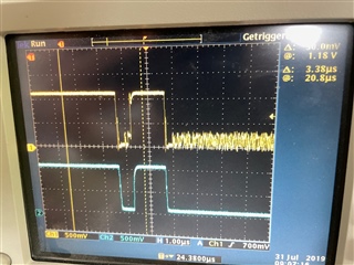 As you can see non of the HS Data gets transfered and the other parts of the signal also don't look right. Data Signal 1 as well as the Clock Signal are looking normal. I already tried enabling the HS Only Mode, as suggested by this forum post: https://e2e.ti.com/support/interface-group/interface/f/interface-forum/1345522/faq-sn75dphy440ss-is-it-okay-to-swap-the-polarity-and-lane-order