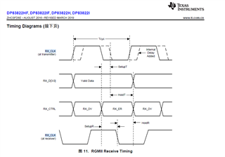 Data sampling reference clock falling edge if in RGMII mode,but pin function description section show the reference is clock rising edge. I'm confused,Could you give me some advice.