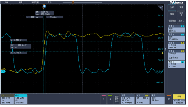 The RX transfer rate can be increased to about 2.2MB/s after seting the RCSR(0x0017) bit 12 from 0 to 1, waveform shows setup time is 4ns.