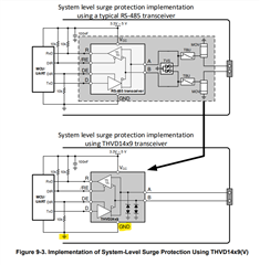 We are considering the use of THVD1439 Surge Protected TRx for our use case, and are slightly confused about the grounding when using this Surge Protected TRx on our board.