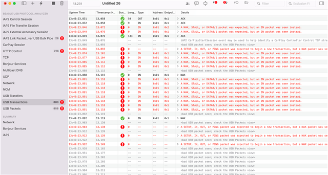 However, despite ensuring that the eye diagram meets the USB-IF specification, we are still unable to pass the ATS test required for CarPlay certification. The test setup is as follows: After passing through the actual vehicle cable, a Beagle of TotalPhase are used to establish the CarPlay connection with iPhone, and the ATS on a Mac will capture packets for analysis. During this test, iPhone 12 and above show no error messages in the ATS, whereas the iPhone XR, while able to initiate CarPlay normally, displays numerous error messages in the ATS. We have tried adjusting the BOOST level, but there was no improvement. We also tried replacing the TUSB216-Q1 and adjusting RX-SEN. Although there are fewer ATS Error when RX-SEN is high, it still does not meet the CarPlay criteria.