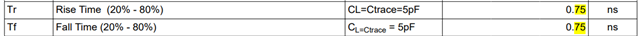 2. Customer wants to use 3.3V for VDD IO, will the rise time be influenced? Is the maximum value still 0.75ns?