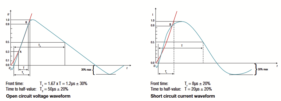If this is true, our datasheets refer to the same pulse. We reference the short circuit current waveform (8/20us), but this refers to the same pulse.