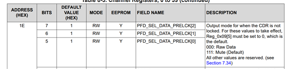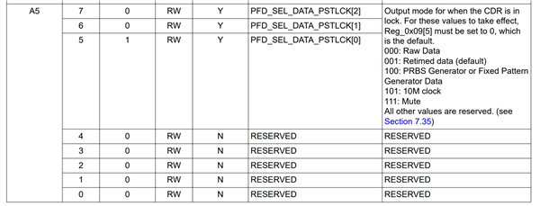 Register 0x1E[7:5] controls the output MUX when CDR is not locked. Register 0xA5[7:5] controls the output MUX when CDR is locked.
