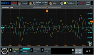 I measured TD and RD signals (on connector pads, after decoupling capacitors) without connecting a SFP transceiver (not sure if is the right procedure), and got this constant waveform on RD+, RD- which seems similar to datasheet figure 7-20