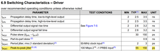 Driver spec on "9 Switching Characteristics" describes 55ps(TYP)、150ps(MAX).