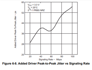 In my opinion, the jitter might be change due to line impedance , the slope fo rising / falling edege and signal bit pattern chage the jitter.