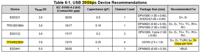 Regarding this, there is an inquiry for recommendation of ESD Protection Diode for USB3.2 Gen2x2. (1CH, 2CH, 4CH)