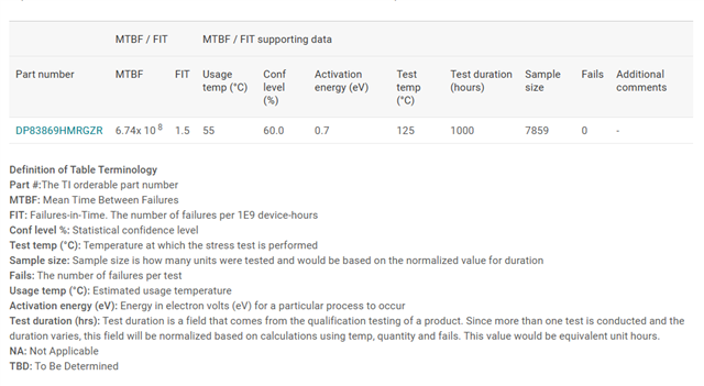 I inquire about the functional safety FIT(Application FIT Rate) value and failure mode distribution, Gate scale for DP83869HM.