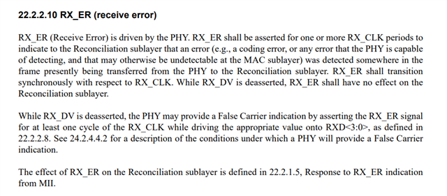 In RGMII full-duplex mode, regardless of the speed, will the RXERR (the error bits output from the PHY) and TXERR (the error bits output from the MAC) never be asserted?