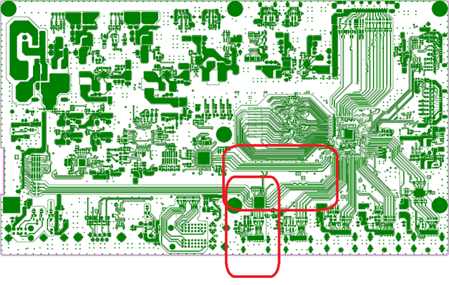 Q3) There was a model that applied HD3SS215IRTQR (Location: U21) before, but the IC was placed close to the front of the Scaler. When installed, the pattern of 1pin~12pin was short, but in this model, the IC location is slightly farther away, so the pattern length of 1pin~12pin has also increased slightly. However, it is said that the screen completely turns off when you touch the pattern of 1pin~12pin. Is there a problem with the pattern?
