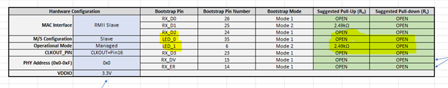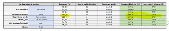 Could you confirm what OPEN state mean and if LED can be attached to those pins if OPEN is needed for strap?