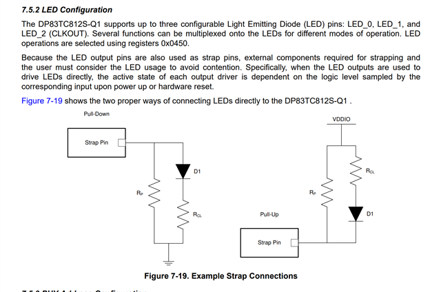 The strap configuration i'm looking for using TI tool requires pins LED1/0 to be OPEN during power up.