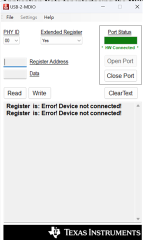 Have they flashed MSP430 on the EVM for MDIO compatibility? If not, please see the direct email I sent you on how to flash it and let me know if you have any other questions.