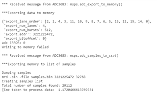 d) Software used: msps server (Refer Fig. E1.png & E3.png) and ADC3683EVM (Refer Fig. E2.png) python client for user configuration and data capturing