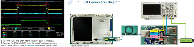 As shown in the figure below, when measuring the waveform of USB UP PORT, the D+ waveform will change from H to L, and the function is normal, and can be detect USB Flash drive.