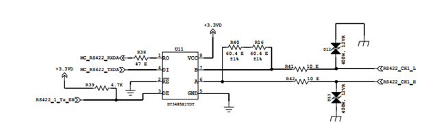 I am using the IC "SN65HVD1781A-Q1" for converting the UART to RS422 signal using the microcontroller P/N. TMS320F28335ZJZQ.