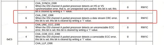 When the STR is released, the DSI84 image displays normally, but bit 6 of the 0xe5 fault status register is 1, and a CRC error is reported. (I have executed Write 0xFF to CSR 0xE5 to clear the error registers, but it does not clear the error.)