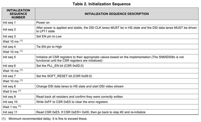 The attached pictures are the DSI84 initialization waveforms during cold start and STR escape. The timing is designed according to the following requirements;
