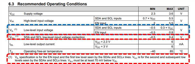 This also satisfies the datasheet note (1) that "VILC must be at least 70mV lower than VOL," as VOL - VILC = 105mV.