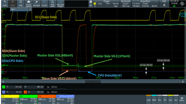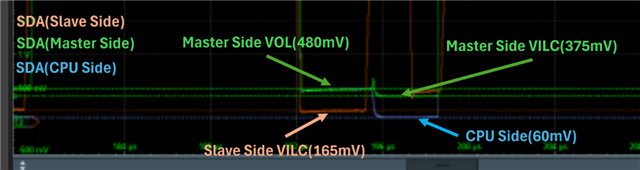 However, The VILC voltage on the master side is 375mV, which satisfies the requirement that VILC ≤ 400mV.