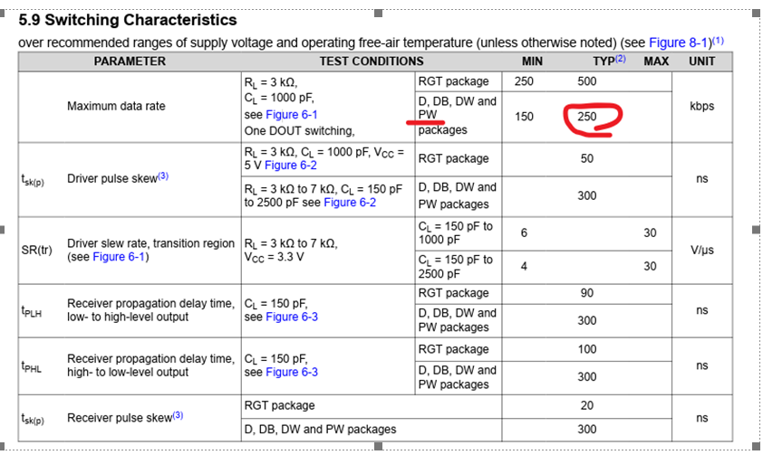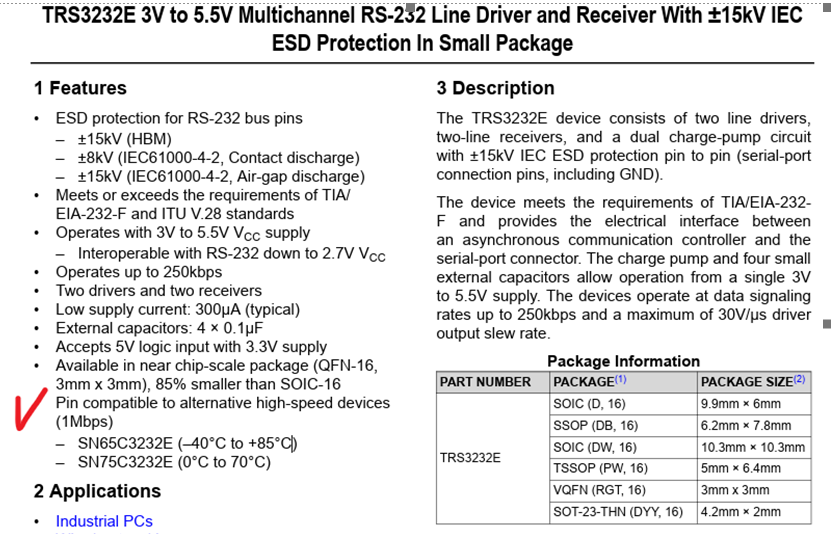 I saw the TRS3232E datasheet and on the same package the data rate only 250 kbps.