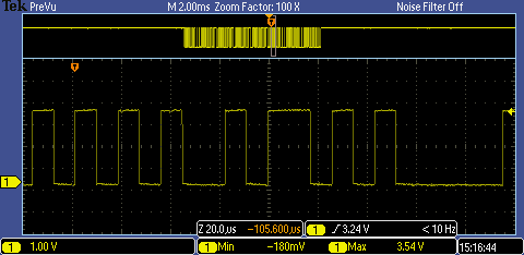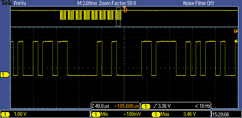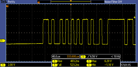 However, during operation, we observe garbage data on the display. Upon checking the RS232 TX and RX signals using a digital oscilloscope, the signals appear distorted and do not represent proper logic levels (not clearly 0 or 1).