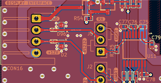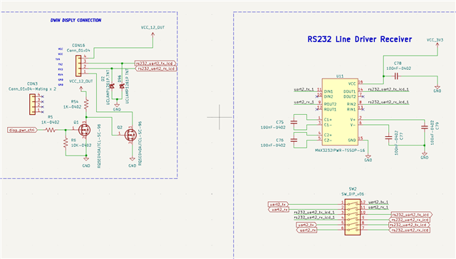 We are using the MAX3232IPWR (TSSOP-16) to convert UART signals to RS232 for interfacing with an RS232-based touch display.