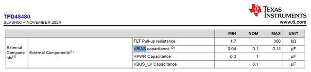 According to the specs, VBIAS suggest a 0.1U 100V capacitor.