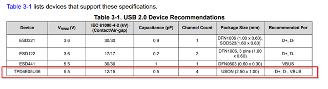 BTW, my previous design used with TPD4E004DRYR, is there any weakness if I move to TPD4E05U06? (for TYPE-C D+/D- protection)