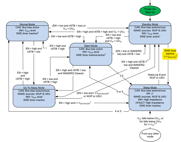 2. When status changes to standby mode from sleep mode, how long does it takes INH=High from once WUP or LWU occurs?