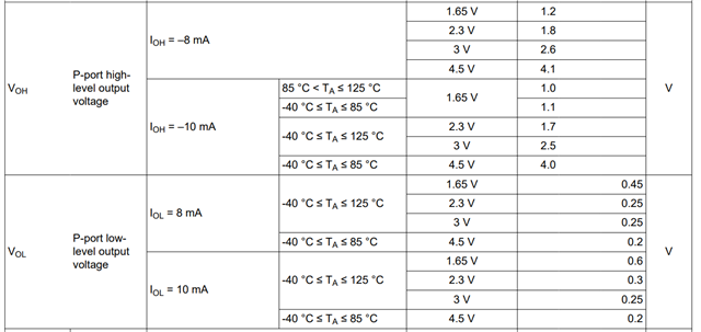 I am suppling Vccp with 1.8V supply, I couldnt find VOH and VOL Logic levels in P Port side .Kindly help me with the details.