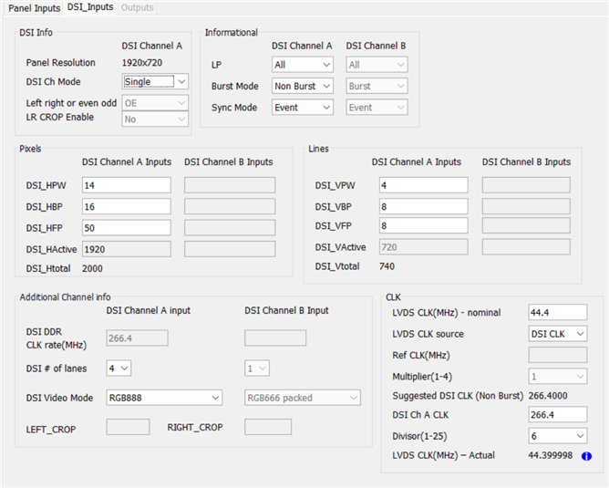 - Data burst time based on actual DSI Ch*CLK and data throughput 6.504 us
