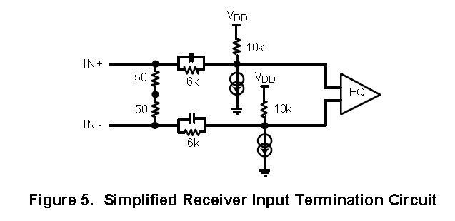 Now, looking at the input termination circuit for the DS32EV100, we see the following:
