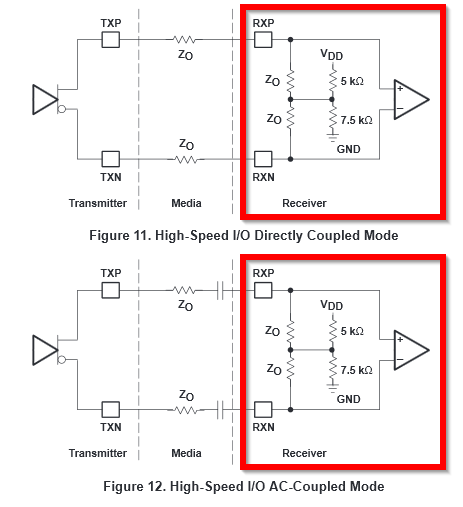 The datasheet of the TLK1521 suggests that the device contains internal input termination on the DINRxp & DinRxn serial inputs (Figures 10 & 11). I wish to varify that. A fellow co-worker claims that TI technical support rep told him that there isn't.