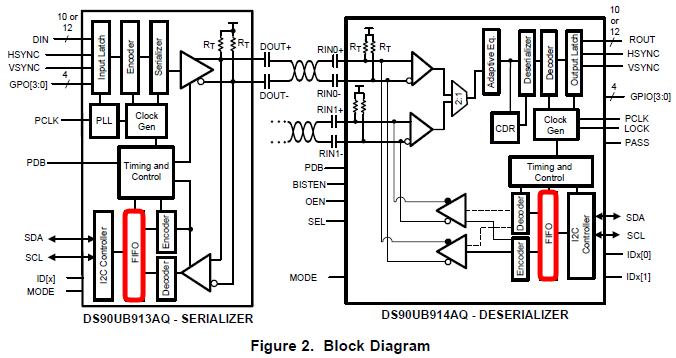 The I2C data is transported across the same physical connection as the video data, but the clock domains are different. Whenever you have different clock domains, there is a requirement for the data to be buffered between the two clock domains.