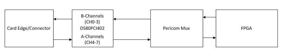 The endpoint is not appearing in the PC after booting up. These FPGAs are on mezzanine cards that work well in other systems, so the issue must be isolated the re-driver. I have tried different settings for RX termination, but using a scope I can see the TX signal from the FPGA is attenuated to almost nothing after going through the mux. If I power down the re-drivers the signal looks fine at the output of the mux, so it appears that the re-driver is killing the signal.